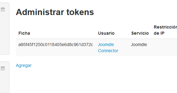 Porque voy a Extensiones / servicios web / Administrar tokens y ahi esta joomdle con el tokken que copie en joomdle, pero no veo por donde copiar el otro token en moodle.
