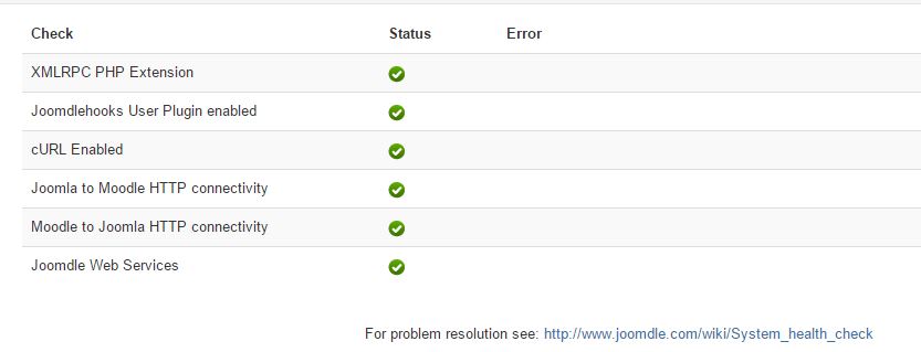 Yes the system check is showing all green. Joomla version is 3.4.8, PHP Version 5.4.45, Joomdle version 1.0.6 and Moodle 3.0.4 (Build: 20160509).