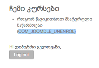 in My Courses module, Self Unenrol button is not showing correctly and is displaying (COM_JOOMDLE_UNENROL) message instead (See the screenshot). How can I fix it?