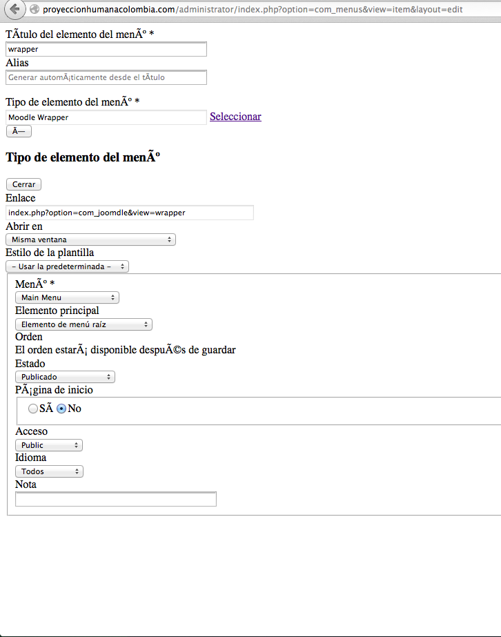 No se si ese sea mi error en realidad o tiene que ver algo con el error que presenta Joomdle, Al elegir un elemento del menu que mostrar ??