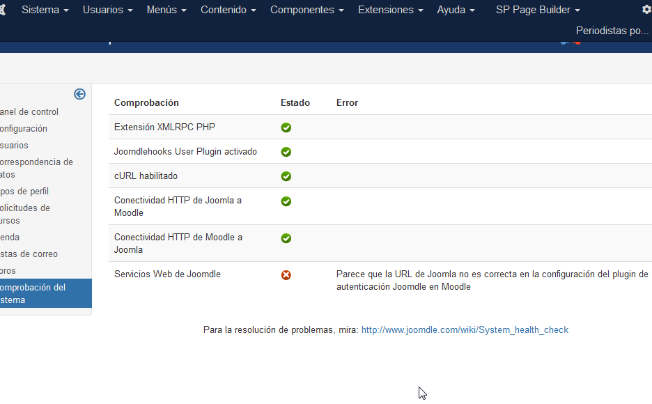 Parece que la URL de Joomla no es correcta en la configuración del plugin de autenticación Joomdle en Moodle.