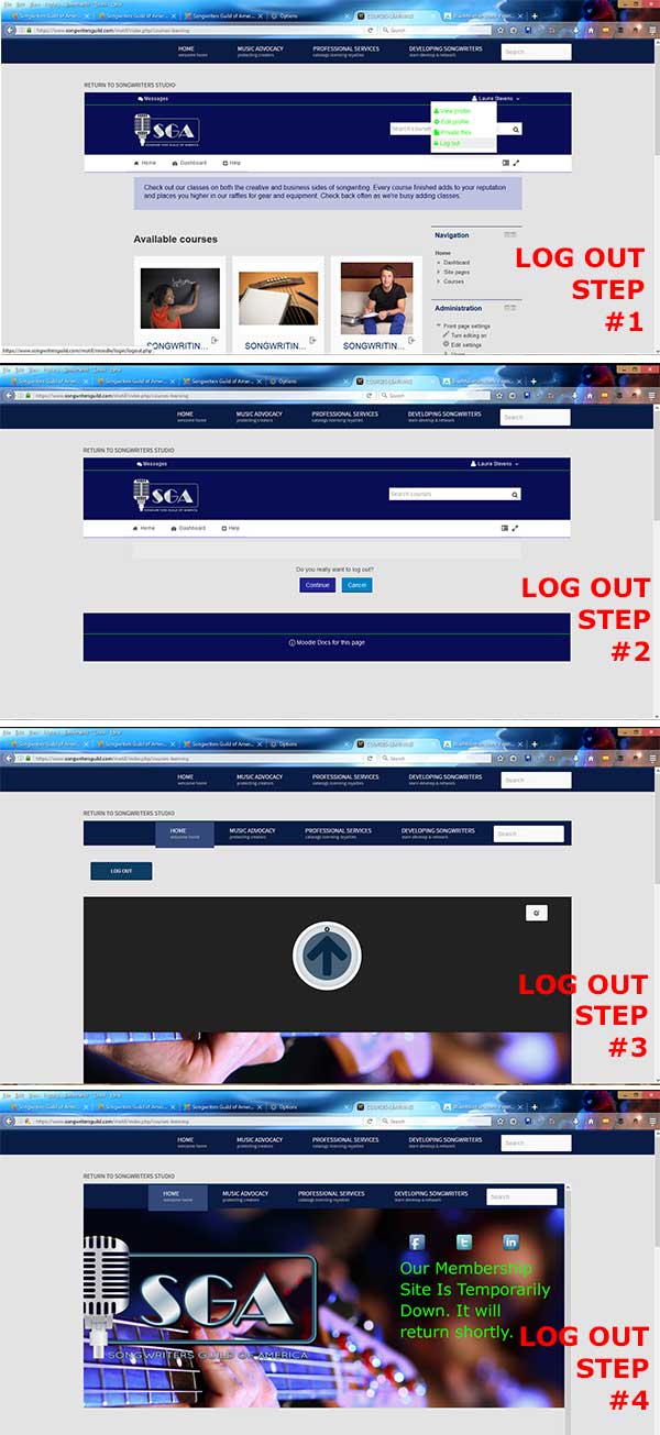 I finally got Moodle pages to load on my site by opening Moodle in a wrapper. However, I now have an issue with logging out of Moodle. If a member were to log out of the Moodle pages using the Moodle log out, they have to go through a series of log out steps that eventually point to a dynamically-created page on my main Joomla site and, once log out is complete, the main site is in a wrapper (see screen captures).