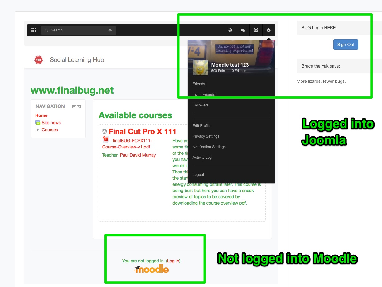 Logging out from Joomla now works but I am not automatically logged out of Moodle! :blink: