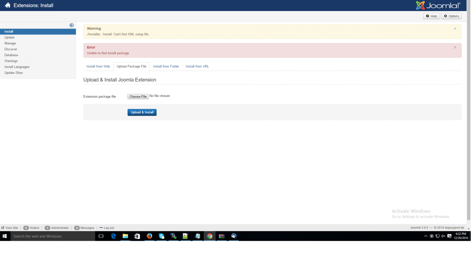 1. Warning:- JInstaller: :Install: Can't find XML setup file.