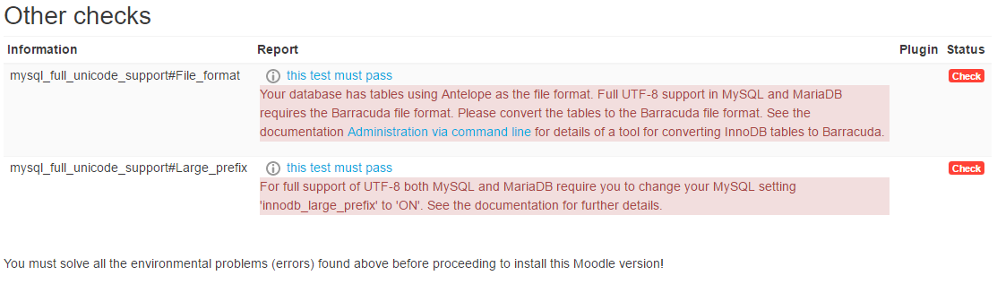 I have installed Moodle and want to integrate this with Joomla. Therefore I did the last check and unfortunately the last two checks I cannot solve.