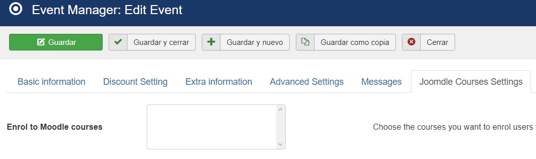 Tampoco aparece la lista de cursos en event booking para enlazar con moodle. Hasta la actualización aparecían: Te adjunto captura de imagen.