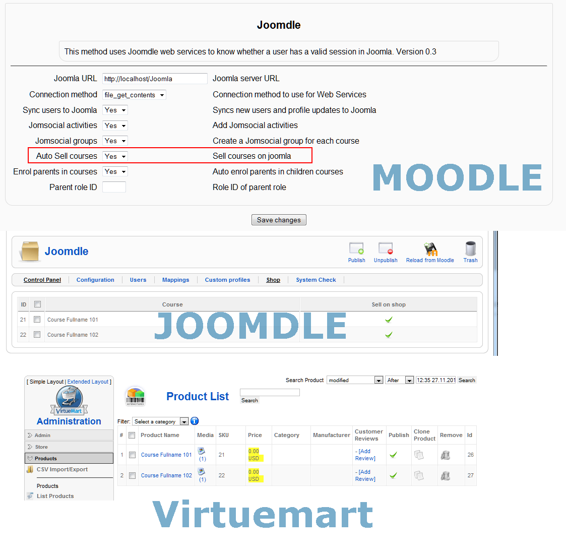 And the above change works only when JOOMDLE shop set to VM, but the problem is I am unable to unpublish selected course from the list.