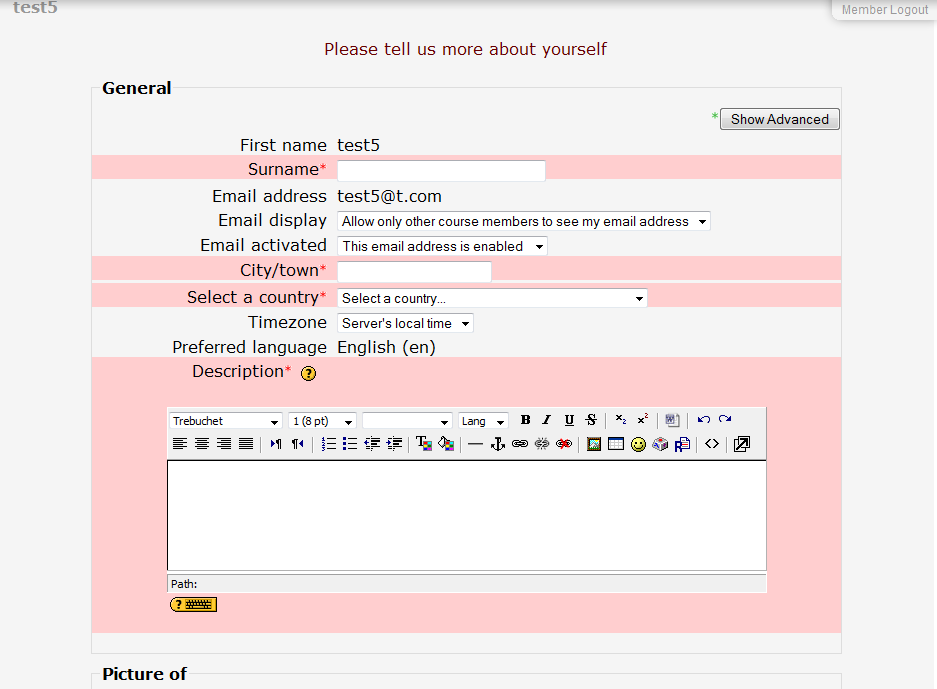 I have set up my moodle, joomla, joomdle website, registered a test user and enrolled in a course through the joomdle category view. When I try to enter the course, it asks me to supply more registration info.