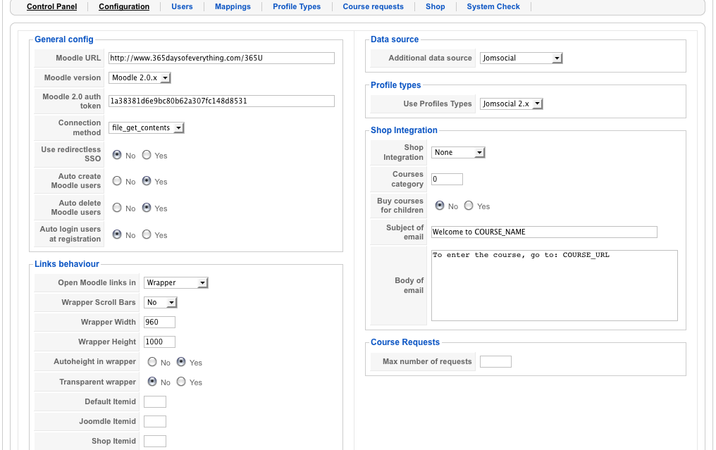 I've also attached screenshots of my menu item and my Joomdle config settings. I want to test some more. I think it may have been a function with the menu item chosen + the settings in Joomdle.