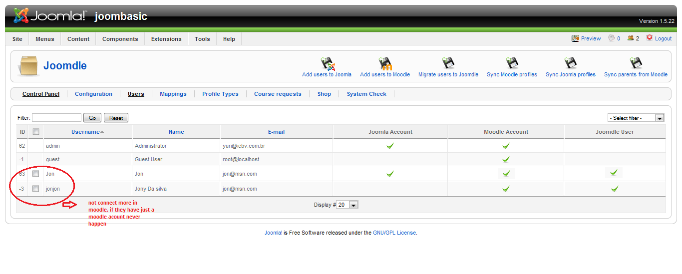 im from Brazil and i am trying set the integration between joomla and moodle and something very weird is happening when i active the networking Moodle .
