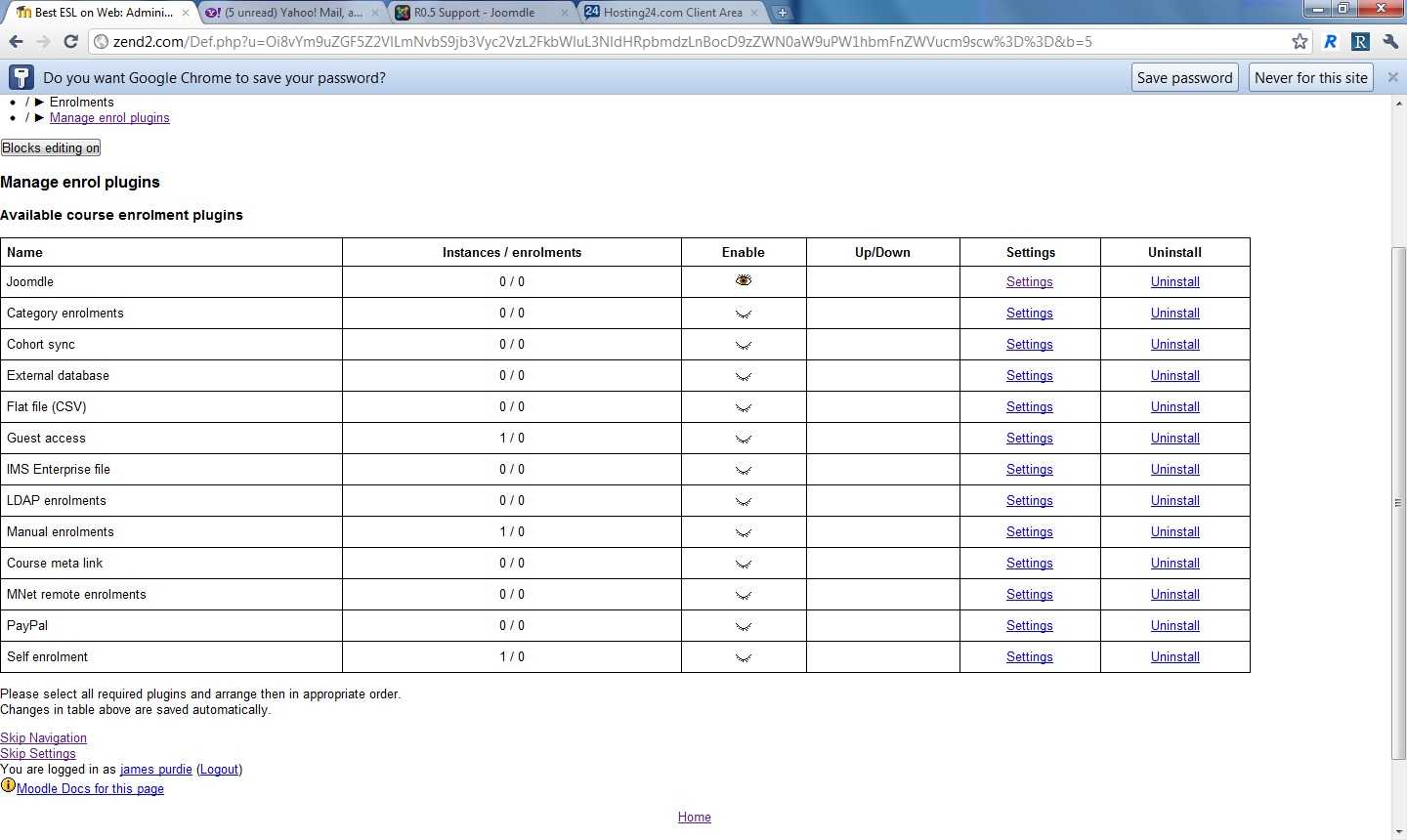Next, it turned on when I logged into Moodle.