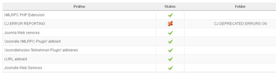 After reading "how to get a detailed error report" - not the best title for this issue - I resolved the main problem. I copied my php.ini to the subfolder moodle/mnet/xmlrpc and got a green checkmark immediately in the health check for Joomdle Web Services.