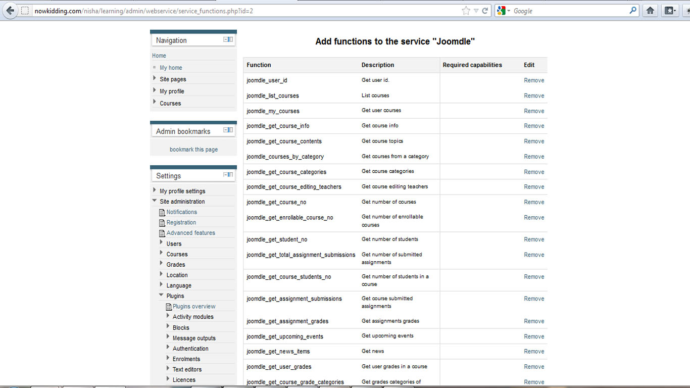 getting The requested function does not exist error in system checking. i added all functions of joomdle in moodle external service . attached function added screen. and gave joomdle user admin acess . still getting error. am using joomla 1.5 and moodle 2.2. plz tell me whats went wrong here .