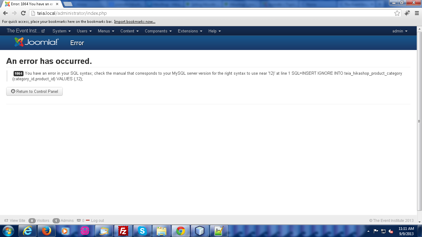 Hikashop Error When Adding Coursess For Sell in SHOP in shop Section in Joomdel Component