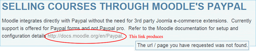 Thank you for reporting the link error. I have removed the link altogether as Moodle is currently in the middle of re-organising their documentation thus no matter how we link it is likely to become broken anyway.