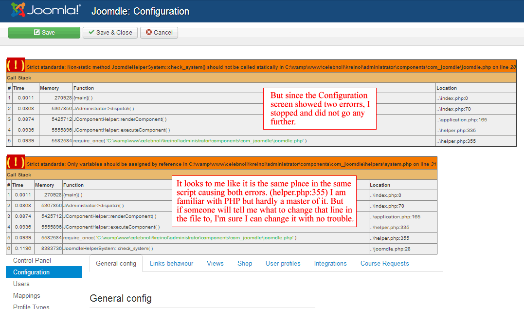 @Fernando: I think I'll leave errors on during my re-install. If I see more errors this second time, I'll report them also. Then, if advised the errors aren't important, I'll happily turn Display Errors off. Thank you.