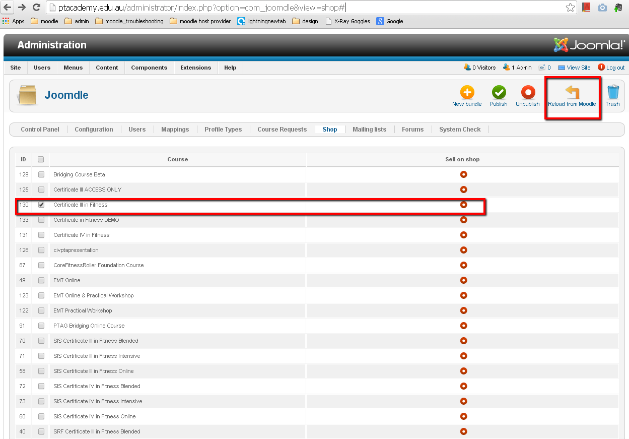 When I was trying to reload courses from moodle under the shop tab, I came across the following error: