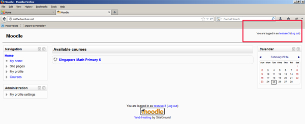 4. When I open a new browser window and navigate to Moodle, he is logged in.