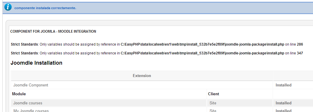 Hola a todos, es mi primer encuentro con joomdle y ya tengo problemas.