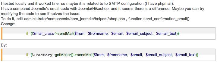 Hi everyone, basically when the user buys and registers a course and the confirmation email with the "welcome to ____ course" and the course url is supposed to be sent to the user, I am getting a can not initiate mail function error. Any ideas how on how to fix this issue? I saw in a previous post a solution for a configuration using Hikashop (which I attached an image of) but when I tried that fix it didn't work, we are using Virtuemart so I'm not sure if there's a difference in the code needed? Any answers much appreciated, Thanks!