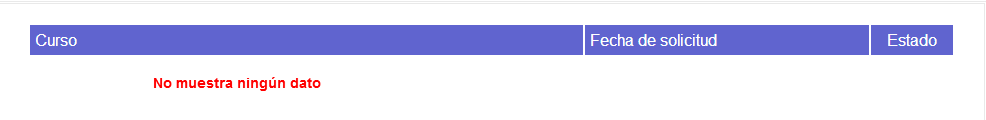 lo tengo configurado como muestra la captura pero al hacer clic en el Menú Solicitudes de curso solo muestra el encabezado de una tabla pero sin datos.