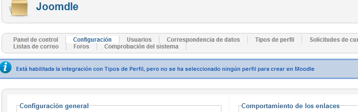 Está habilitada la integración con Tipos de Perfil, pero no se ha seleccionado ningún perfil para crear en Moodle