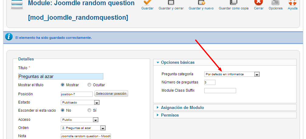 Hola Antonio, mira he seleccionado la categoría del cuestionario que cree en moodle previamente.
