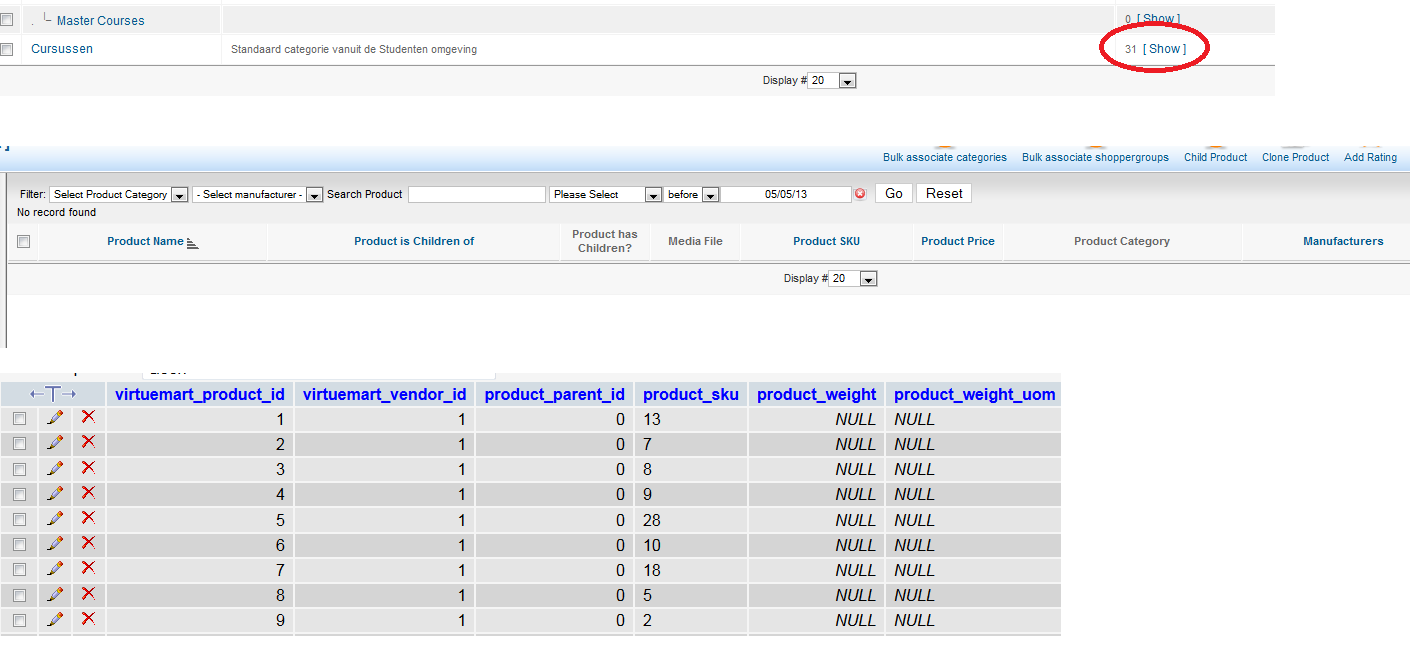 I have a small problem.. when i all the courses reload from moodle i see that these items are imported into the catagory of virtuemart but the products are not visible.