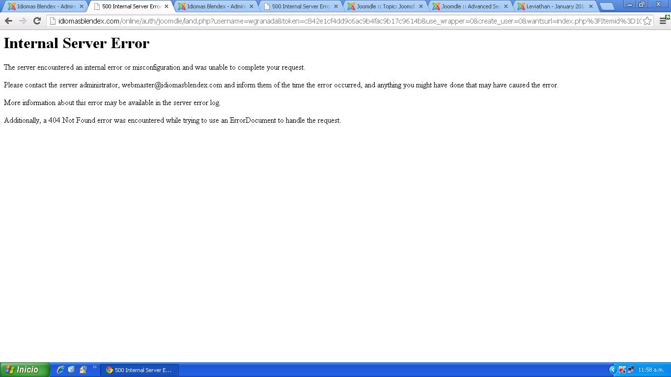 Cuando intento acceder desde Joomla a moodle un error que adjunto en la imagen.