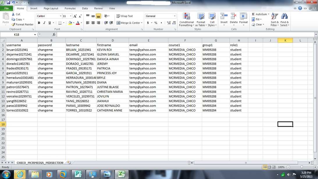 moodle csv file template of automatically inserting users in moodle like if I want to upload 40 users enrolled in the same subject and same professor.