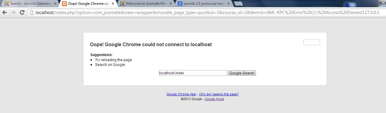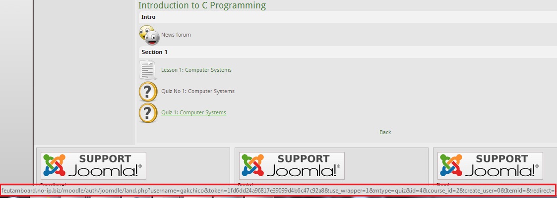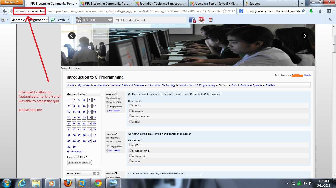 Please see (ss5.jpg) on the error page when I changed localhost to feutamboard.no-ip.biz i was able to went through the quiz link.