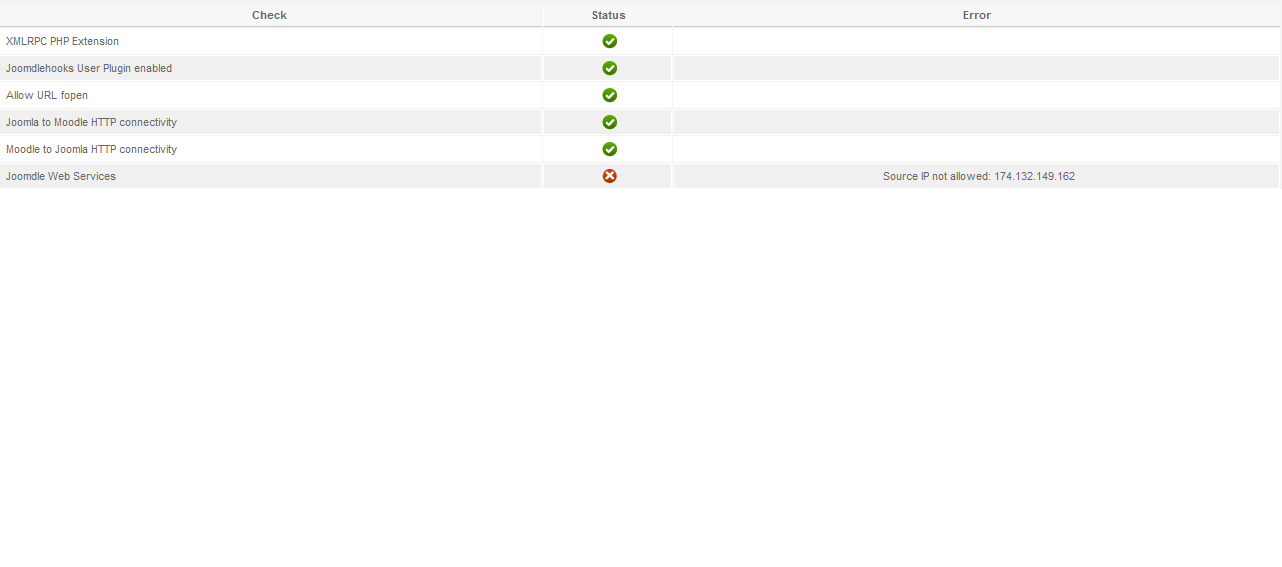 I Getting Joomdle Web Services Error - Source IP not allowed: 174.132.149.162 on System Check.