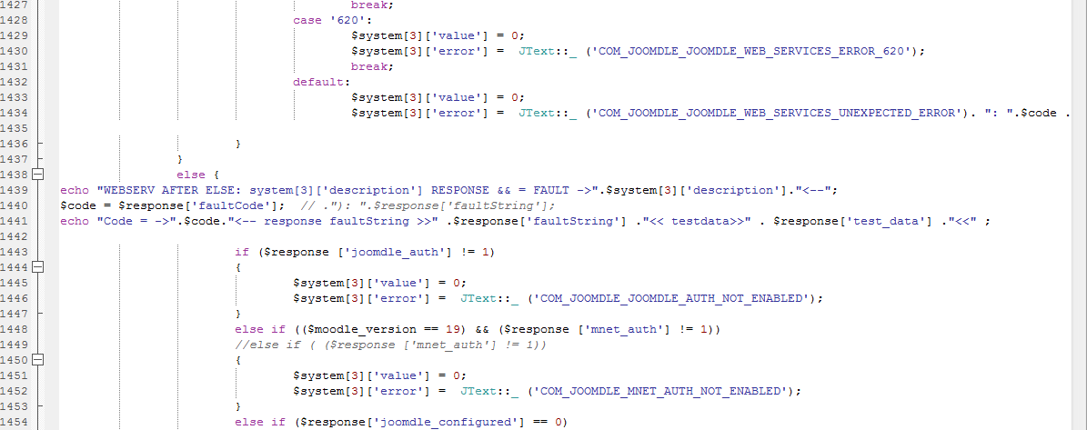 done some logging on the responses from the system call. (com_joomdle/helpers/content.php around line 1389)