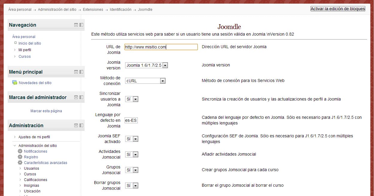 - Por lo tanto, en Moodle estoy añadiendo la dirección principal del dominio, con el prefijo http:// y en Joomla (en el componente Joomdle) estoy colocando la URL del subdominio también con ese prefijo.