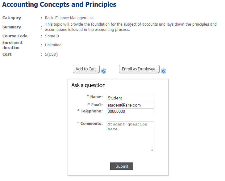Ask a Question Form in Course Details Page was created by shekar