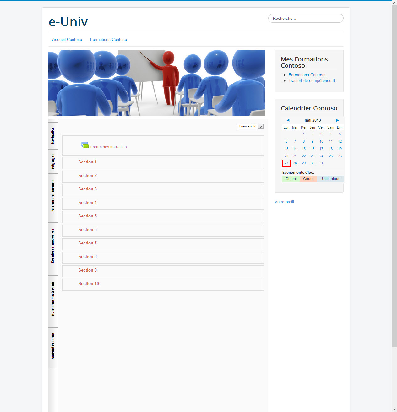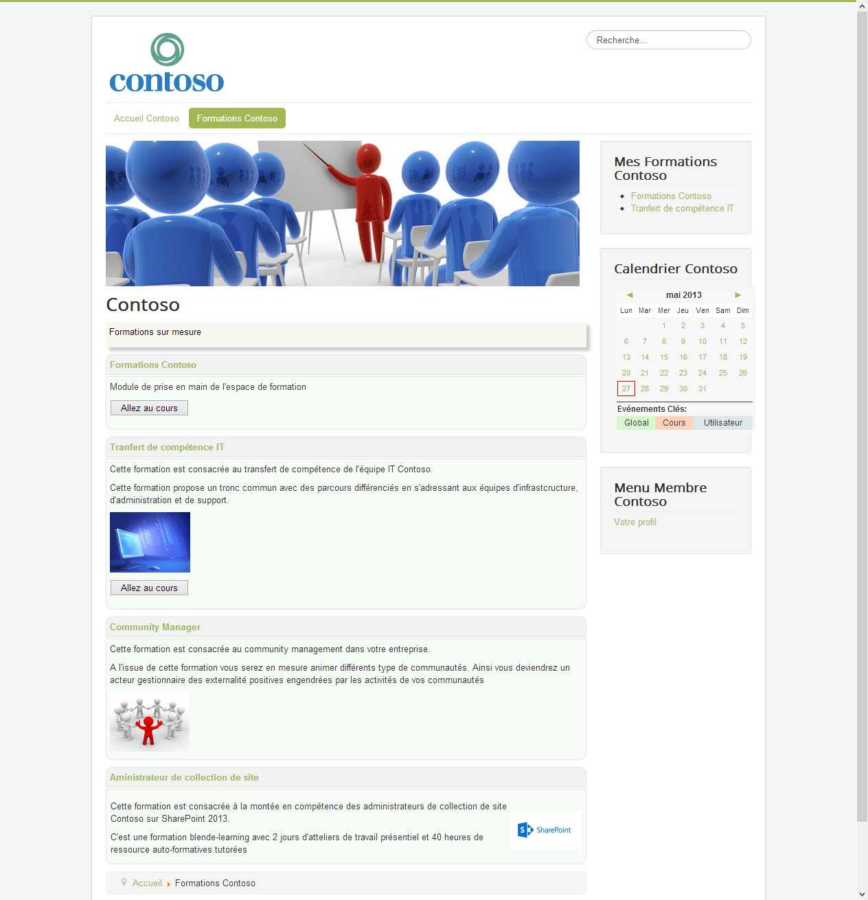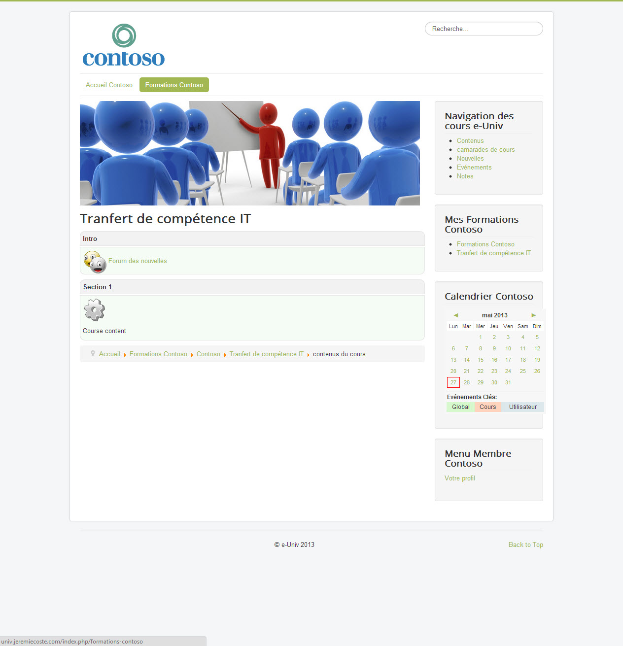 User from my Contoso corporate customer use my e-Univ portal and they have a dedicated place where they can access their own contents and courses through a link: