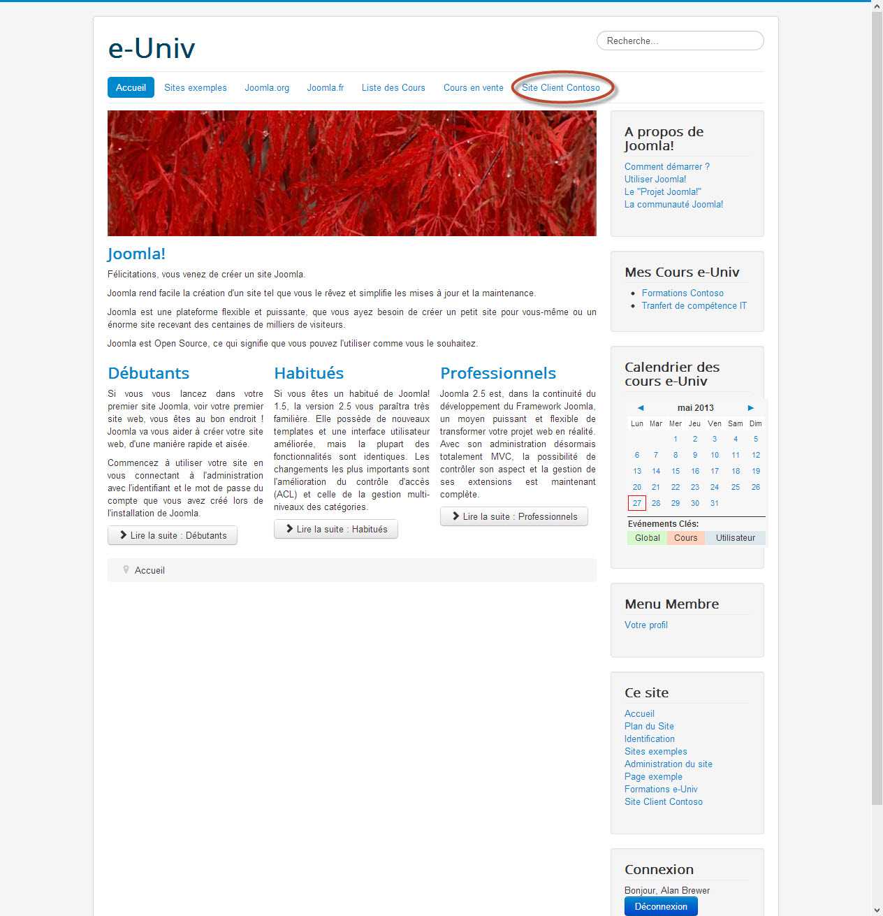 But when they want to access the course content through the joomdle wrapper the branding is a mix between my portal branding (e-Univ) and there branding (contoso trainsing site) :