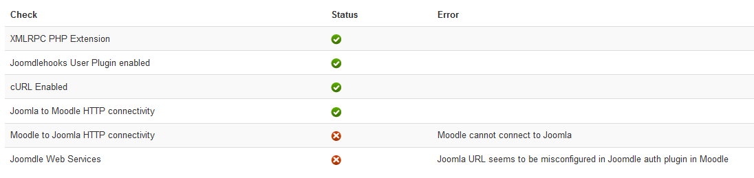 I have cURL activated in both Joomla and Moodle and I still get an error as mentioned above, if I use file_get_content I get all green in system health check. Sorry if I was a but unclear.