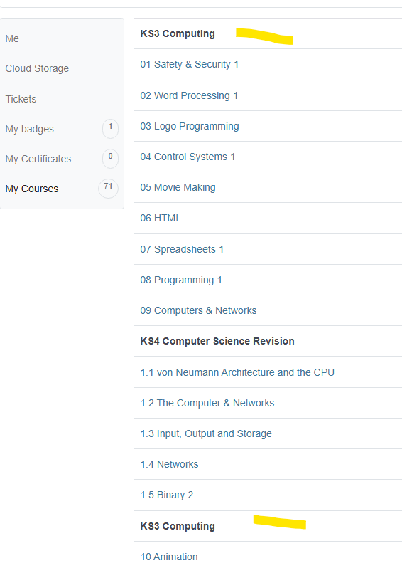 > The headings would be good if they were collapsible, so you could click on KS3 Computing to reveal the courses (Collapsed is the default), which prevents even a long list from being shown.