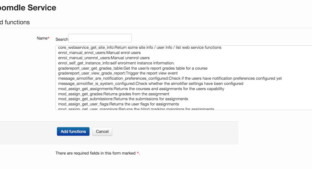 In Moodle, when i check under the external web services... my web service user has lost all of its functions... The functions just dont exist anymore (even with the add function, there are no more functions with joomdle in it)