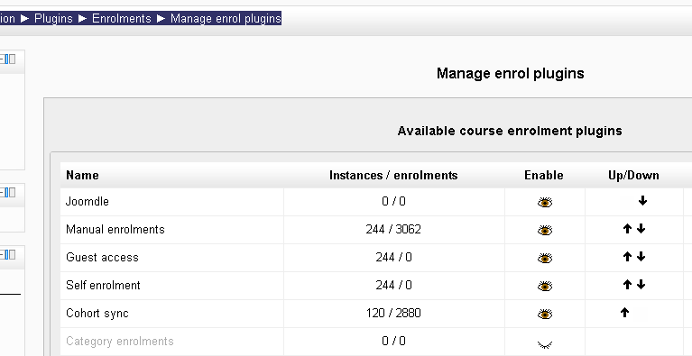 I am using HikkaShop to sell courses but the users are not assigned to the correct role. I have noticed the following, when i go to Home / ► Site administration / ► Plugins / ► Enrolments / ► Manage enrol plugins, Joomdle has 0 instances and 0 enrolments and Manual enrolments have many instances (see attached pic)